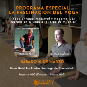 Yoga Antiguo, Medieval y Moderno: Los cuerpos en el yoga a lo largo de milenios Prácticas de Hatha Yoga, Pranayama y Meditación Sábado 21 de Marzo 2026 Con Mark Singleton y Madhana Agulla Lugar: Gran Hotel los Abetos, Santiago de Compostela Boletín inscripción: Más información: info@yogasananda.com, Tel. 616 40 68 69 Sobre el programa: […]